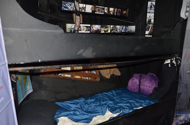 Nous avons eu la chance de pouvoir monter à bord et de pouvoir faire quelques photos malgré l’affluence bien compréhensible. Sur le navire, une exposition retrace l’aventure avec panneaux explicatifs, fac-similés de documents, visite des différents ponts et de la cale, reconstitution des lieux de vie.