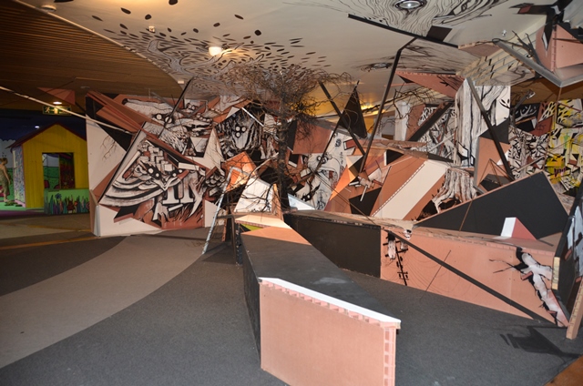 Il est délimité par 600 m de barrières ; avec la complicité de l’entreprise DUBREUILH, de la Métropole de Bordeaux, de la mairie de Floirac, et le soutien du Ministère de la Culture, une fresque monumentale est née.