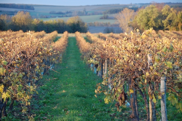 C’est sur cette dernière vision des vignes que nous quitterons les abords du Domaine. Juste avant, le soleil aura fait les terres cultivables un peu plus grises, les vignes un peu plus dorées et l’herbe grasse un peu plus verte. C’est à regret que nous tournons la page tout en suivant du regard le soleil venant taquiner l’horizon avant de disparaître derrière les forêts. Le Maine Giraud va plonger dans la nuit. La Tourelle gardera ses secrets. il me semble pourtant que je l’ai sentie vibrer en sortant de cet escalier si étroit donnant sur le refuge D’Alfred de Vigny. Etait-ce elle qui vibrait ou moi qui respirais un air de poésie à pleins poumons, mais cependant dans la discrétion ?